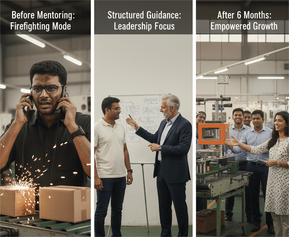 For example, a manufacturing MSME in Coimbatore discovered through mentoring that the founder was spending nearly 70% of his time resolving daily issues. With structured guidance, he redesigned roles, delegated effectively, and strengthened leadership within the team. Within six months, overall sales productivity doubled.