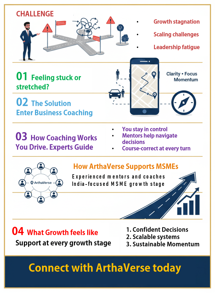 ArthaVerse connects MSMEs in India with experienced business mentors, coaches, and consultants who walk alongside you at every stage of growth.