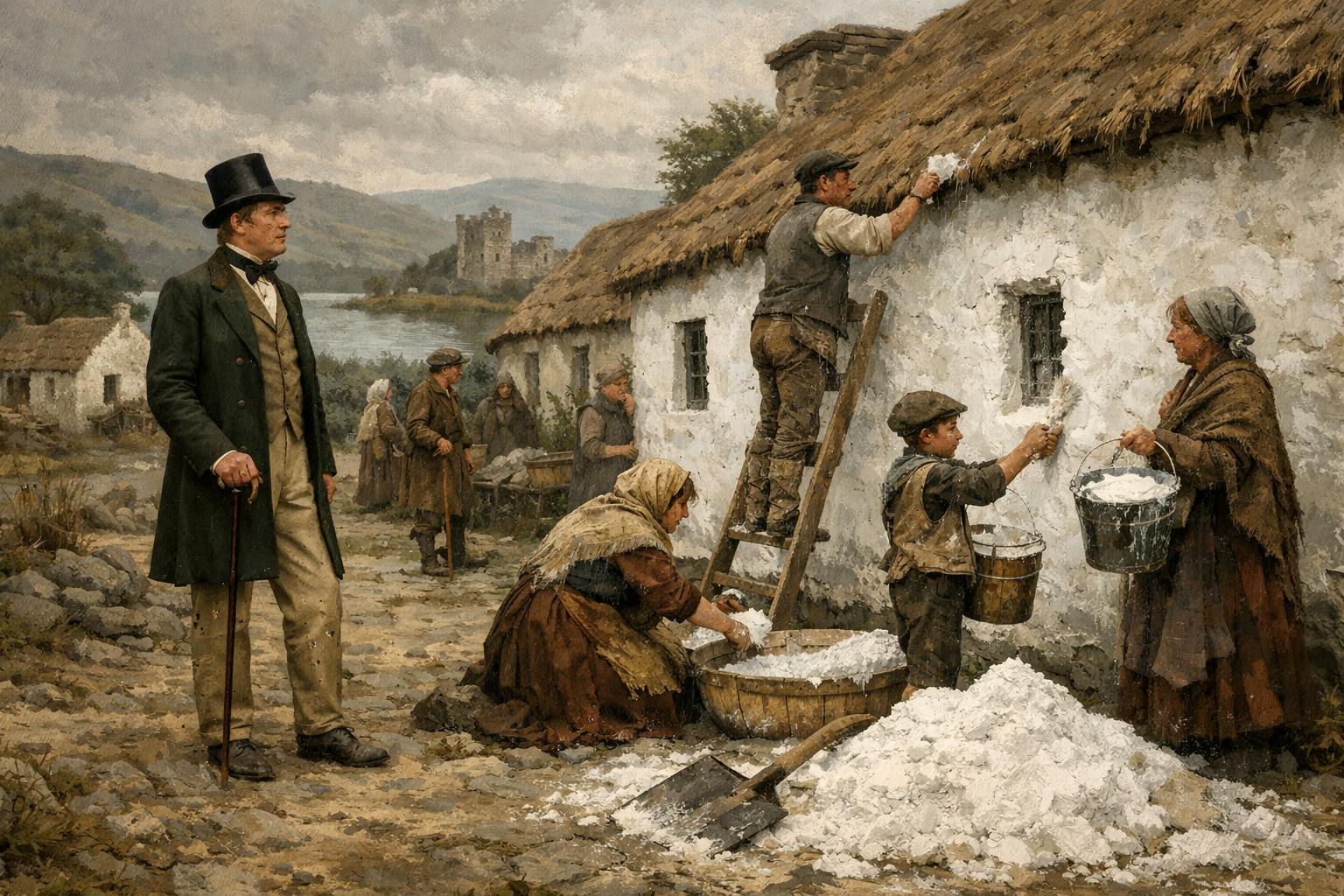 It was in this bleak context that John Caldwell Bloomfield, owner of Castle Caldwell in County Fermanagh, was trying to restore his estate and bring some form of stability to the land and the people who depended on it. While travelling through the surrounding villages, he noticed something curious. The small cottages of his tenant farmers had an unusually bright white finish on their exteriors.