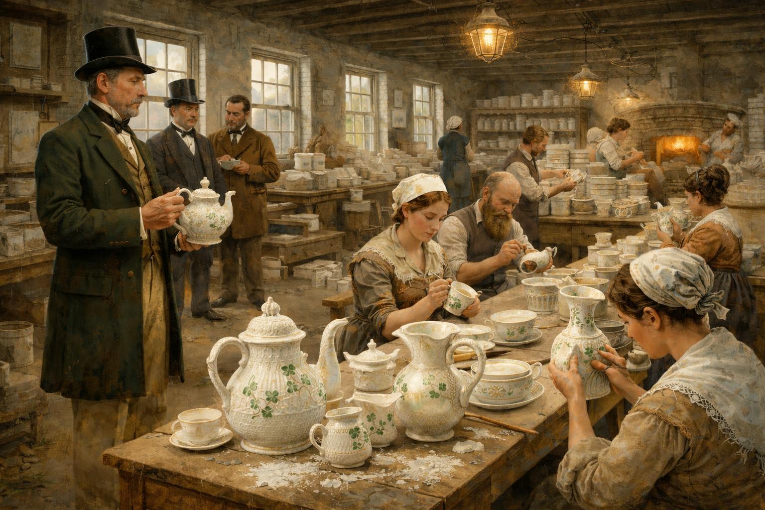 In 1857, instead of waiting for circumstances to improve, he acted. Bloomfield established a pottery factory in the village of Belleek, partly to generate revenue, but also to provide employment and dignity to people who desperately needed both. Partnering with ceramic expert Robert Williams Armstrong and financier David McBirney, he experimented with the local clay, feldspar, and kaolin. The result was a refined Parian porcelain: translucent, delicate, and marble-like in appearance.